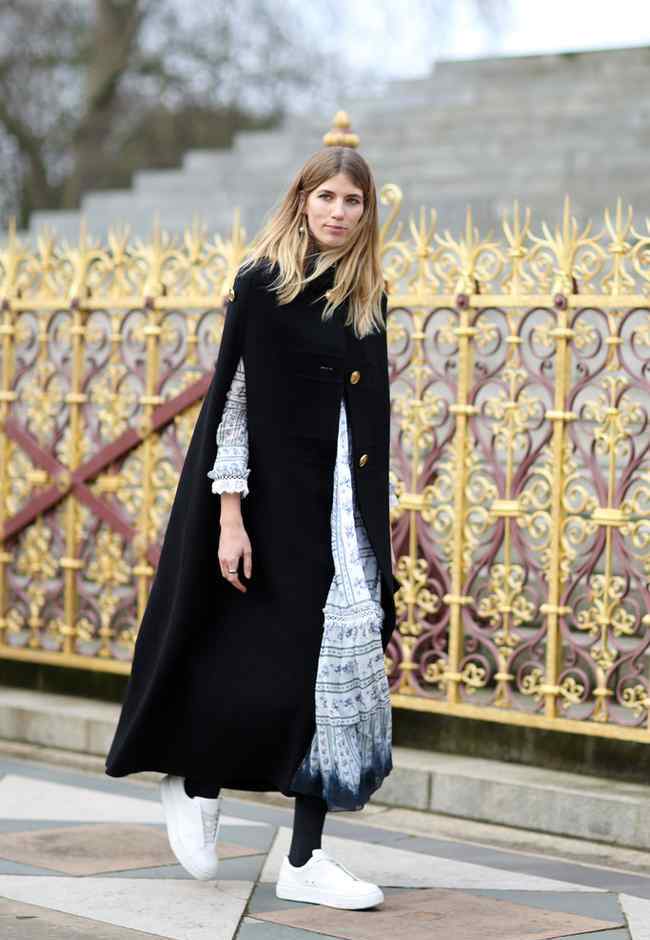超长外套如果搭配宽松的裙子,修长的脚踝不露在外面会显得很结实。