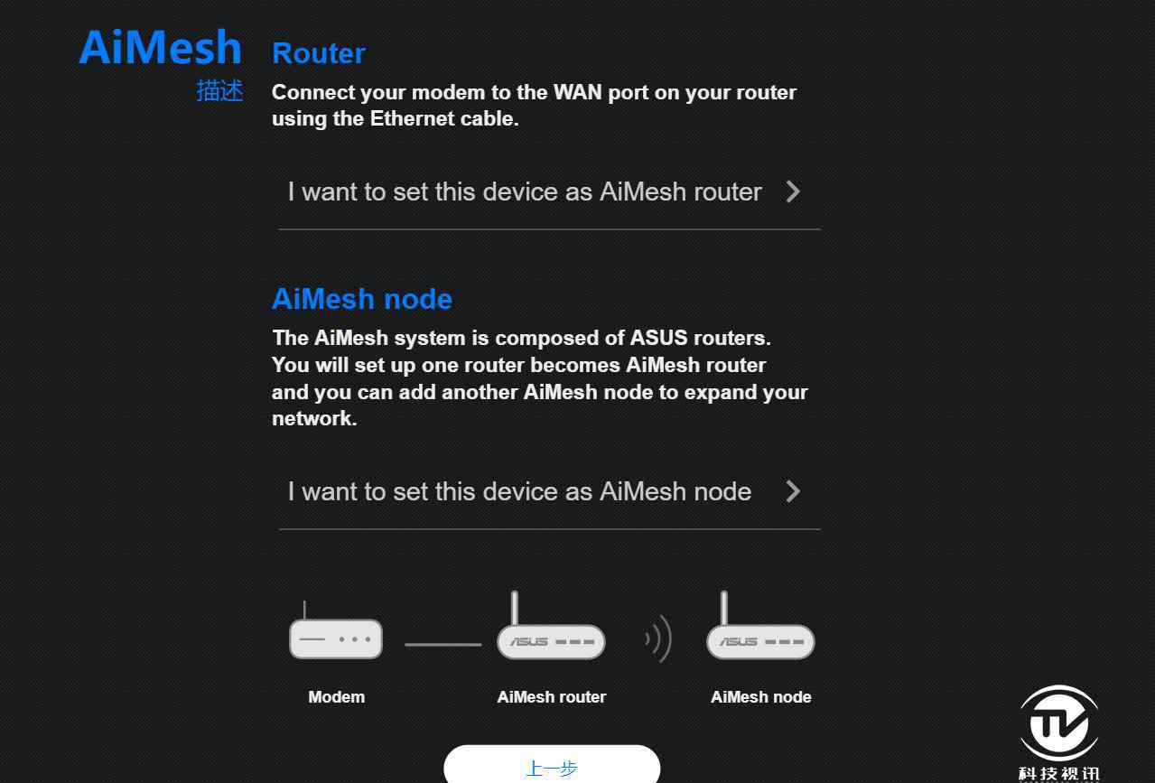 有很多操作模式可以选择,这个设置当然是AiMesh!