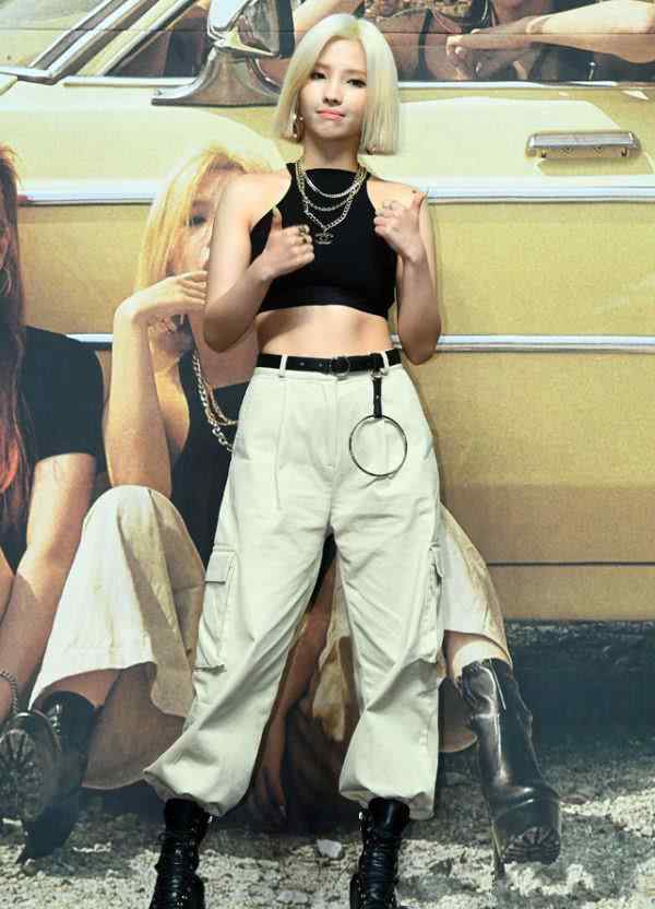 可能是因为全是说唱歌手,所以她的光环一直很强。这一次,把全的头发染成了金黄色,这种深色风格的组合十分合适。短发的全看起来很酷,她和赵可能是组合中最好的身材管理者。