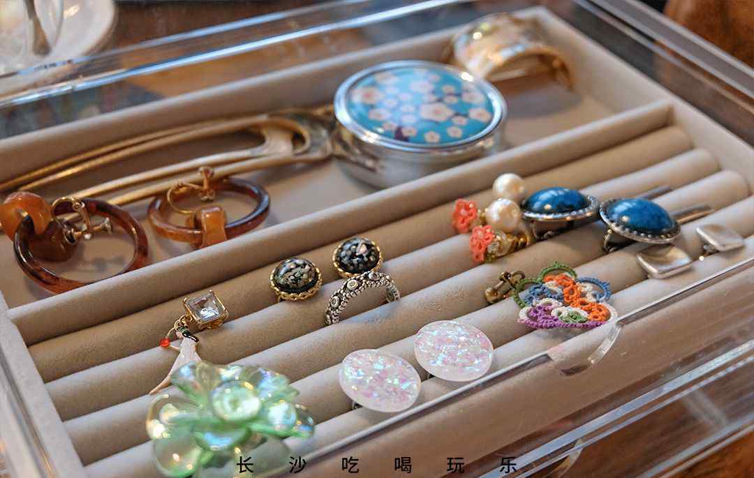 珠宝主要来自美国的古董店和拍卖行,其中一些是杨格和葛亮出国旅行时淘的。每个价值从几十块到几百块不等,还有很多价格特别的耳环,可以说是专门为喜欢古董首饰的同学准备的。