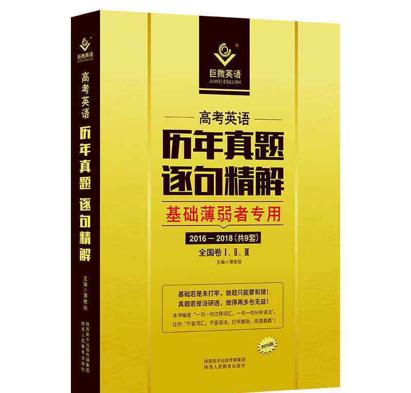 聚伟英语《历年高考英语逐句解读》适合英语基础较差的高三学生。讲解真题一个一个来,词汇和语法笔记都很详细,是补充基础的最好资料。高考英语学习大部分是基础,最有效最实用的计分方法就是背单词,反复刷真题。