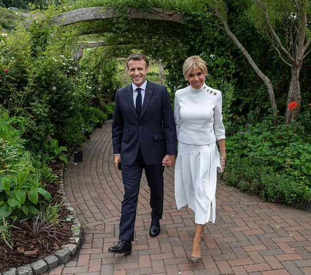 当地时间6月11日,法国第一夫人布里吉特·马克龙陪同丈夫出现在康沃尔郡,参加在那里举行的G7峰会。尽管68岁的前女教师已经多次和丈夫一起见过英国首相鲍里斯·约翰逊,不过和首相夫人-33岁的凯莉正式见面还是头一回。