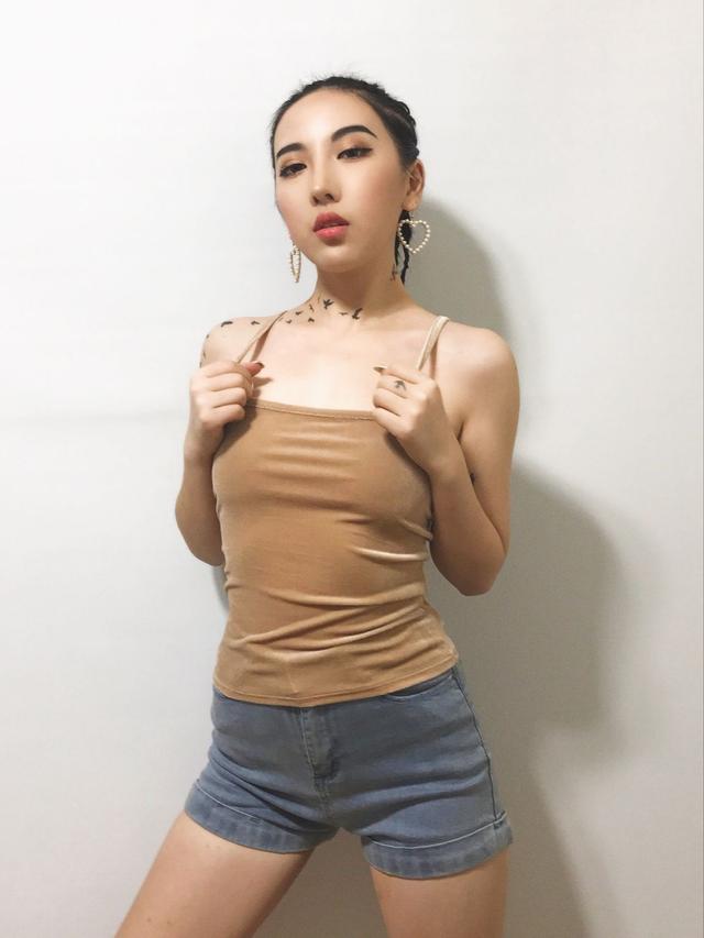 我们看出这个网红的身材比例确实好,堪称魔鬼身材。