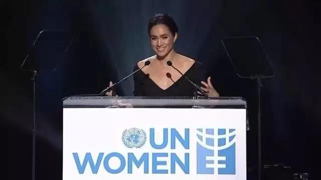 《金装律师》让她成名后,梅根成为联合国妇女大会的女性倡导者之一,主题也是两性平等,也是因为这场发言的善缘,让她和哈里结缘。