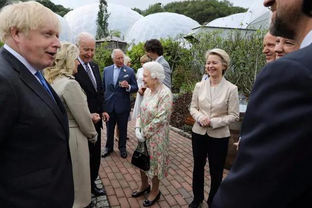 英国女王出现在G7领导人峰会C位,部分领导人“罚站”