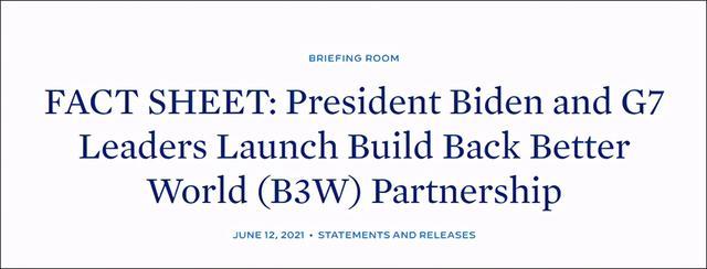 白宫发布声明,宣布G7峰会上开聊B3W议题