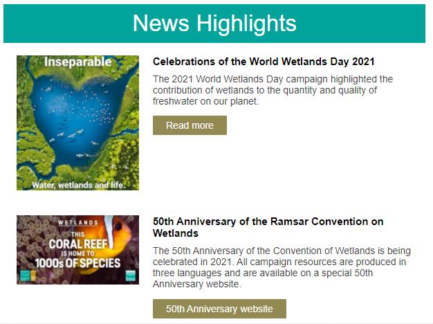 今年我们将纪念和庆祝《拉姆萨尔湿地公约》成立50周年。这是提高人们对湿地的重要作用和公约工作的认识的关键时刻。为此,秘书处设计了一项为期一年的宣传活动,目的是让缔约方和合作伙伴传播关于湿地价值的信息,分享适合其国家和地方受众的内容。