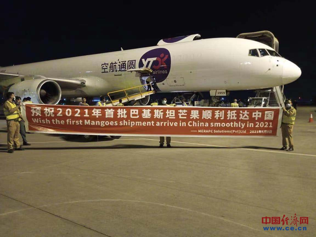 中国经济网6月11日讯 今年首单巴基斯坦输华芒果----来自巴基斯坦旁遮普省拉合尔市的750箱3.2吨芒果于6月9日14点53分在云南昆明长水机场清关后,顺丰接手圆通,负责中国段快递。目前芒果的天猫、抖音上架待审。