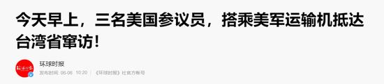 最后一点也是最严重的,6月6日,美国三名参议员搭载美国军用运输机降落台湾!
