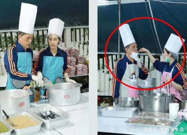 在活动现场,诗妮娜和泰王穿着蓝色情侣装,戴着厨师帽和口罩用心地烹饪食物,两人配合得十分默契。在食物烹饪好之后,贵妃用勺子盛了一些食物让泰王品尝,泰王拉下口罩品尝贵妃送上的食物,两人甜蜜喂食,令人羡慕。