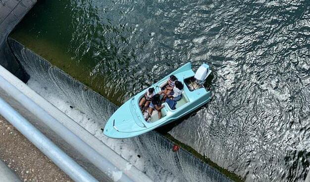 据英国《每日邮报》6月12日报道,6月10日,在美国德克萨斯州奥斯汀,一艘载有四人的船险些滑下11米高的大坝。视频显示,一艘蓝色的船上有四名女子,船头已经越过大坝的边缘,随时可能滑下大坝。据报道,四人租船游玩时发生了危险,便立即向船主求救,船主驾驶另一艘船用绳子拽住了她们的船,但却无法将船从大坝湍急的水流中拖回来,只好打电话求救。最终,救援人员接到电话后赶到现场,用一艘大船将两艘船安全地救了出来,船上的4名乘客无人受伤。