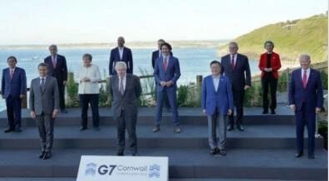 报中的照片以英国康沃尔郡卡比斯湾为背景,韩国总统文在寅站在美国总统拜登和英国首相约翰逊的中间。很快有不少网友发现,韩国政府上传的这张照片和原始照片(上图)不同,裁掉了站在最左边的南非总统拉马福萨。有网友认为,这是为了让文在寅看起来像是站在中间而故意为之。也有网友指出,这是外交失礼。还有网友提到,拉马福萨是照片中唯一的黑人,韩政府此举很可能引发有关种族歧视的争议。