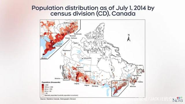 其实这不太准确,但也不是很离谱。加拿大统计局报告称,截至2016年,66%的加拿大人居住在距离加美边境100公里或更近的地方,为全国三分之一的人口,留下了96%的土地。