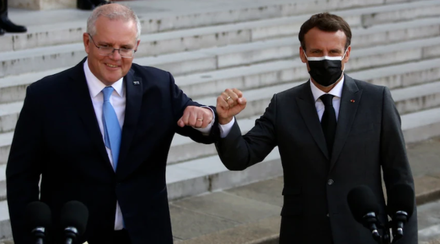 媒体16日报道称,法国总统马克龙本周二在爱丽舍宫会见了来访的澳大利亚总理莫里森,两人就当前国际热点问题进行了谈论,虽然过程中并没有明确提及中国,但会后马克龙表达了对澳洲的强烈支持,声称将坚定地与堪培拉站在一起,同时谴责任何针对澳大利亚的“经济胁迫”,并指责这种行为“违反国际法”。
