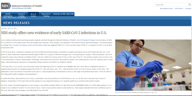 这次,NIH的研究人员从这些样本中选取了2.4万人的血样进行抗体测试,它们的采集时间从2020年的1月2日到3月18日。