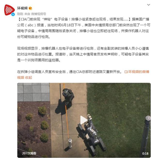 (原标题:CIA门前突现“神秘”电子设备!排爆小组紧急赶往现场,结果发现......
