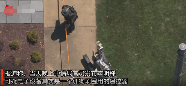 现场视频显示,排爆机器人在电子设备旁进行检测,还有全副武装的排爆人员小心谨慎的对这件物品进行处置。报道称,当天晚上中情局官员发布声明称,可疑电子设备其实是一个训狗项圈用的遥控器。