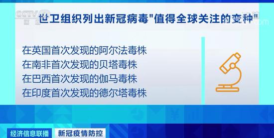 世卫组织已经列出了四个“值得全球关注的变种”,分别是:在英国首次发现的阿尔法毒株,在南非首次发现的贝塔毒株,在巴西首次发现的伽马毒株,在印度首次发现的德尔塔毒株。
