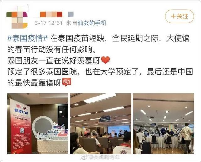 6月17日,在泰中国公民接种新冠疫苗。图片来源:@央视网青年