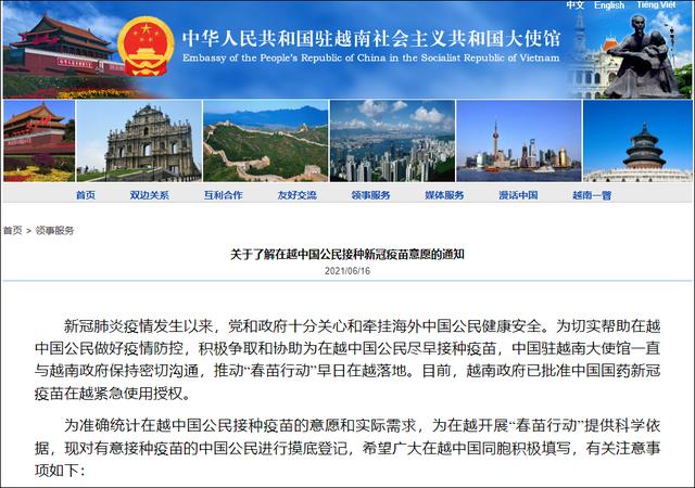中国驻越南大使馆在脸书上发布了这一消息,不少越南网友留言表示感谢。