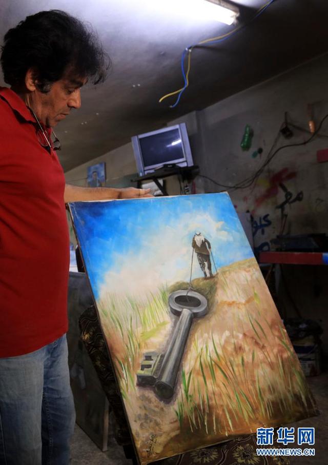 “当巴勒斯坦难民回家时我将停下画笔,因为我所有的创作热情都是基于巴勒斯坦问题。”巴勒斯坦“难民的画家”哈利勒·盖斯告诉记者。