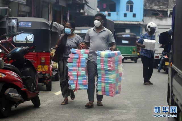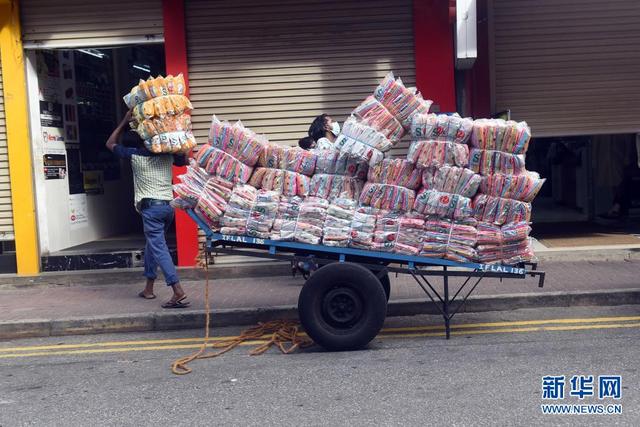 6月21日,人们提着货物走在斯里兰卡科伦坡街头。