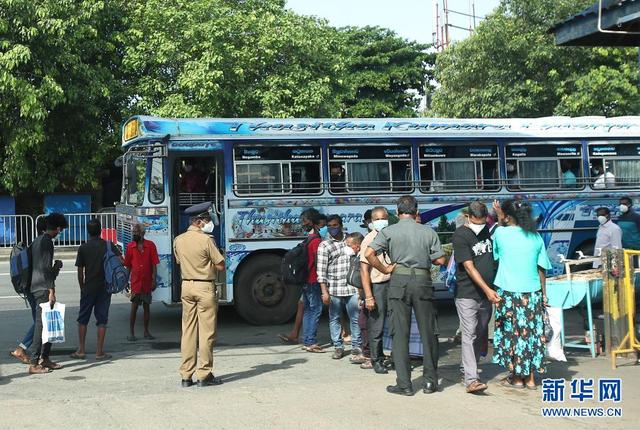 6月21日,人们在斯里兰卡科伦坡等待乘坐公共汽车。