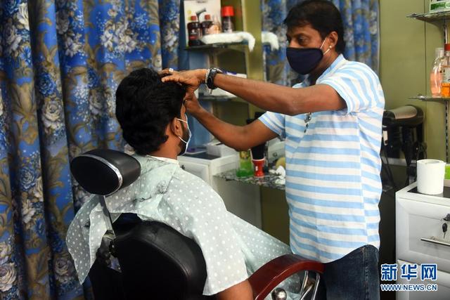 6月21日,一名男子在斯里兰卡科伦坡一家理发店理发。