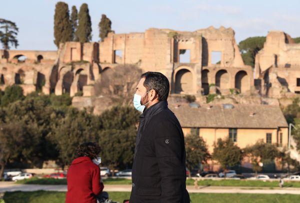 一名男子戴着口罩走在意大利罗马街头。(新华社)