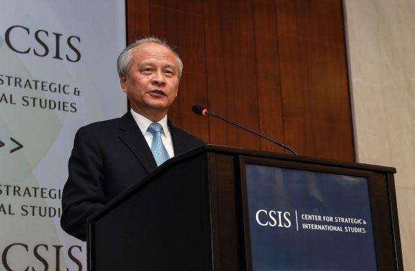 资料图:崔天凯在美国智库战略与国际问题研究中心发表演讲。(新华社)