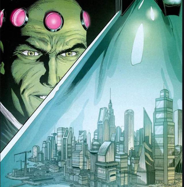 (图为美国超人系列漫画中的大反派布莱尼亚克,它最喜欢干的事情就是把它觉得有意思的城市缩小,然后装到一个玻璃瓶里,供它“把玩”)