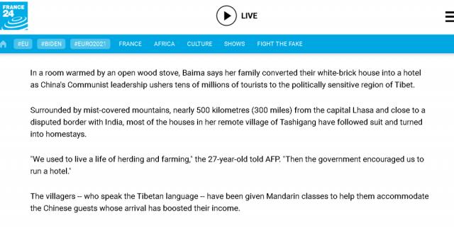 近日,西方世界的大型新闻通讯社的“法新社”,刊发了一篇关于中国西藏的报道,似乎是在介绍中国政府是如何通过发展家庭旅游业,帮西藏民众脱贫的。