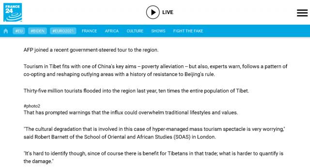 简而言之,法新社这篇关于西藏旅游扶贫工作的报道的大致结构是:先说下记者的所见所闻,然后找西方的“批评者”去“定调”,然后再是记者的所见所闻,再是西方“批评者”的“定调”。