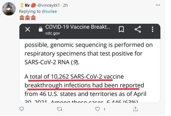 有人则贴出了美国疾控中心自己公布的一组美国疫苗被病毒攻破案例的数据,暗示纽约时报和黄瑞黎对此事“选择性失明”。