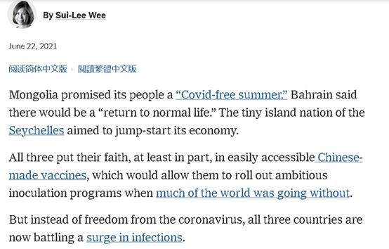 (截图来自《纽约时报》记者黄瑞黎撰写的抹黑中国疫苗的文章)