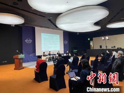 韩国釜山大学助理教授张暮辉主持研讨会。 中日韩合作秘书处供图