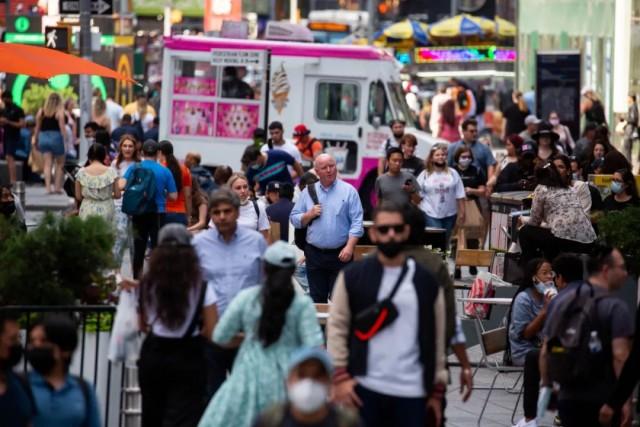 6月15日,人们走在美国纽约时报广场。新华社发(郭克摄)