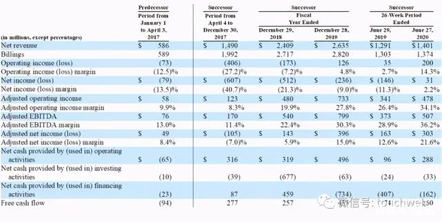 招股书显示,McAfee在2017财年、2018财年、2019财年分别营收为14.9亿美元、24亿美元、26.35亿美元;截至2020年6月27日的26周内,McAfee营收为14.01亿美元,上年同期为12.91亿美元;