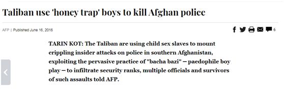 法新社新闻,阿富汗警察落入塔利班的“美男计”陷阱被杀。