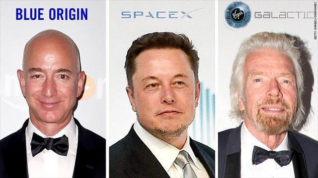 贝索斯、马斯克、布兰森,全球商业航天“三巨头”。图据CNN
