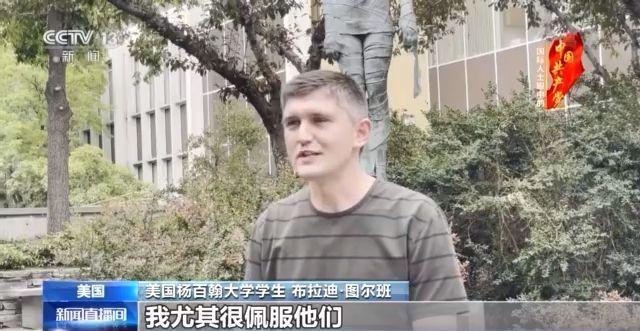 美国杨百翰大学学生 布拉迪·图尔班:中国的发展很惊奇,很不可思议。我看到他们的科技发展,他们的高铁。我尤其很佩服他们把国家联合(团结)起来,这个很棒,我们美国人也可以从中学习,未来也可以与他们合作。