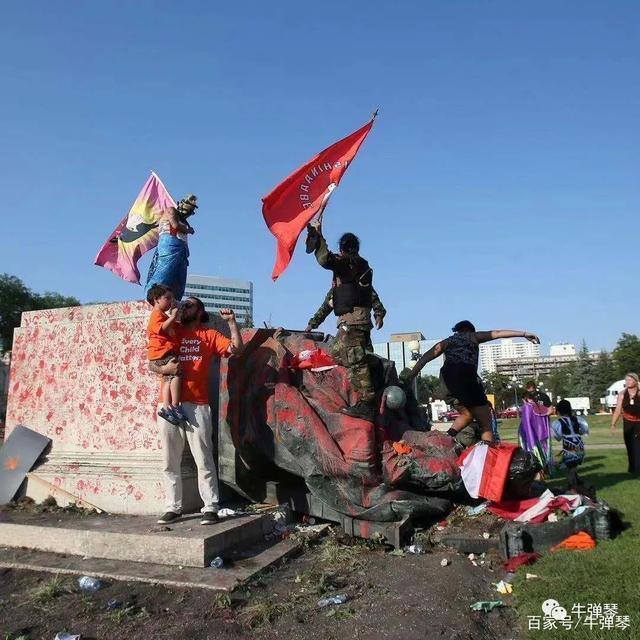 所以,除了焚烧教堂外,一个又一个殖民者的塑像被推翻。