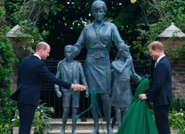 戴安娜王妃的雕塑造型翻车了,毫无美感甚至充满乡土气息,盛世美颜被埋没了。苏塞克斯公爵的表现友好而又刻意,看来是换了一种态度来应对英国王室局势的变化。