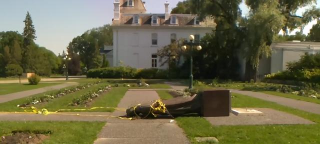 在加拿大7月1日的国庆日当天,示威者们直接推翻英国维多利亚女王和伊丽莎白二世的调查以示愤怒,并在雕像上用油漆写道:“我们曾经是孩子、让他们回家”的标语。
