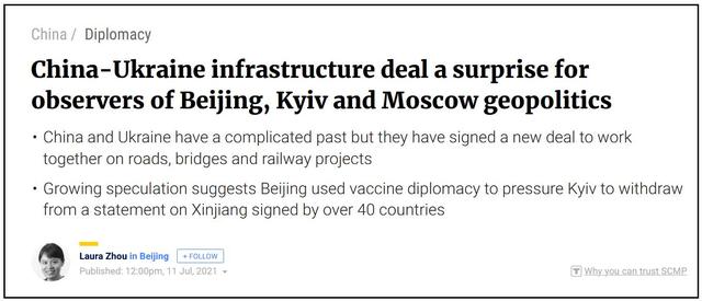 【文/观察者网 杨子江】“对北京、基辅和莫斯科的地缘政治观察家来说,中乌(签署)基础设施协议令人意外,”香港《南华早报》11日以此为题的报道称,乌克兰政府希望与中国建立更紧密的经济联系。