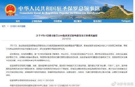 中国驻圣保罗使馆发布旅行提醒 据中国驻圣保罗总领馆网站消息,7月17日,瑞士航空自圣保罗前往苏黎世的LX93航班因前序航班机械故障造成严重延误,影响该航班与后序赴华的LX188航班正常衔接,导致计划乘坐该航班中转赴华旅客无法成行,部分旅客暂时滞留圣保罗机场。获知情况后,我馆高度重视,第一时间向滞留旅客了解情况,表达关切,并向瑞士航空提出严正交涉,要求航司承担主体责任,采取切实措施做好善后工作,妥善解决旅客合理诉求。我馆同时敦促相关机票代理商加强与航司协调,协助旅客做好机票退改签等相关工作。我馆将密切关注事件后续发展,并全力协调相关单位寻求妥善解决方式。驻圣保罗总领馆再次提醒,当前,国际疫情形势持续严峻,国际旅行存在较大交叉感染风险,强烈建议大家“非必要,不旅行”。此外,受中转国防疫政策及其它技术原因的影响,巴西赴华航班情况仍存在较大不确定性,即使已出票的航班也有延误或取消的可能性,请计划出行的旅客充分评估可能出现的风险,审慎选择中转航班和路线,若遇航班延误或取消,应理性维权,与航司、机票代理商理性商讨解决方案,必要时可诉诸法律途径。