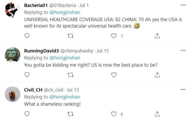 北美观察指出,长期以来,由于英美为代表的英语媒体在国际话语权上的绝对地位,导致各种水平低下却符合编纂者利益的“国际排名”泛滥。这并不仅仅发生在公共卫生领域,打开CNN和其他“主流媒体”的网站,教育、经济、文化各个方面,都逃不开所谓的“国际排名”,这些排名的背后多带有浓厚的政治和商业动机。