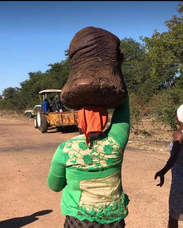 在非洲因象牙而死去的大象不在少数,一旦大象被射杀,死亡的信息很快传开,村民们就会像雨后春笋般,噔噔噔冒出来,拿着锅碗瓢盆各种容器,整个村的人都在等待着这场大象盛宴。