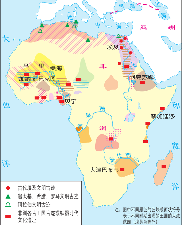 古埃及灭亡后,非洲也出现过努比亚(库施王国)、阿克苏姆、加纳、马里、桑海、津巴布韦等王国,但是他们的发展水平都比较低,整体上还未进入中央集权的水平。