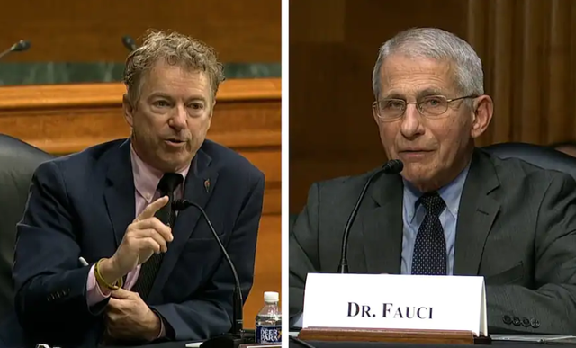 兰德·保罗(左)在国会听证会上向福奇发起质询 视频截图